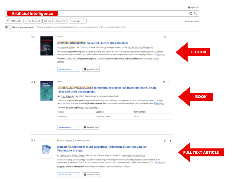 By using "Quick Search", you can access results from the Bilkent University Library collection as well as from subscribed databases and open access resources.