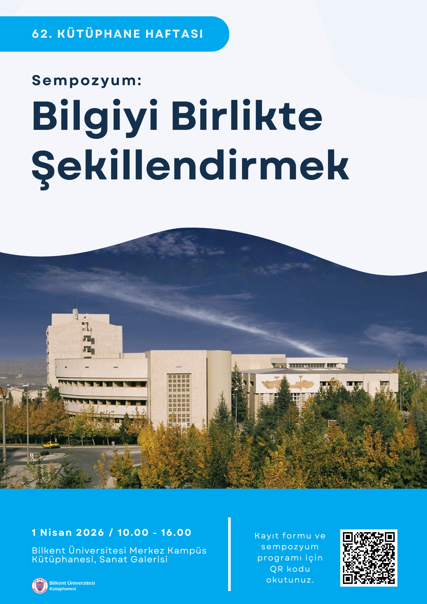 Bilkent Üniversitesi Kütüphanesi olarak, 62. Kütüphane Haftası ve kütüphanemizin 40. yılı kapsamında düzenlediğimiz “Bilgiyi Birlikte Şekillendirmek” başlıklı sempozyuma sizleri davet etmekten memnuniyet duyuyoruz.